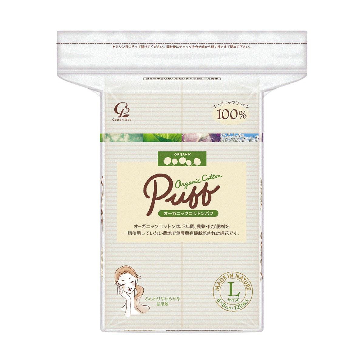 オーガニックコットンパフ Lサイズ 120枚