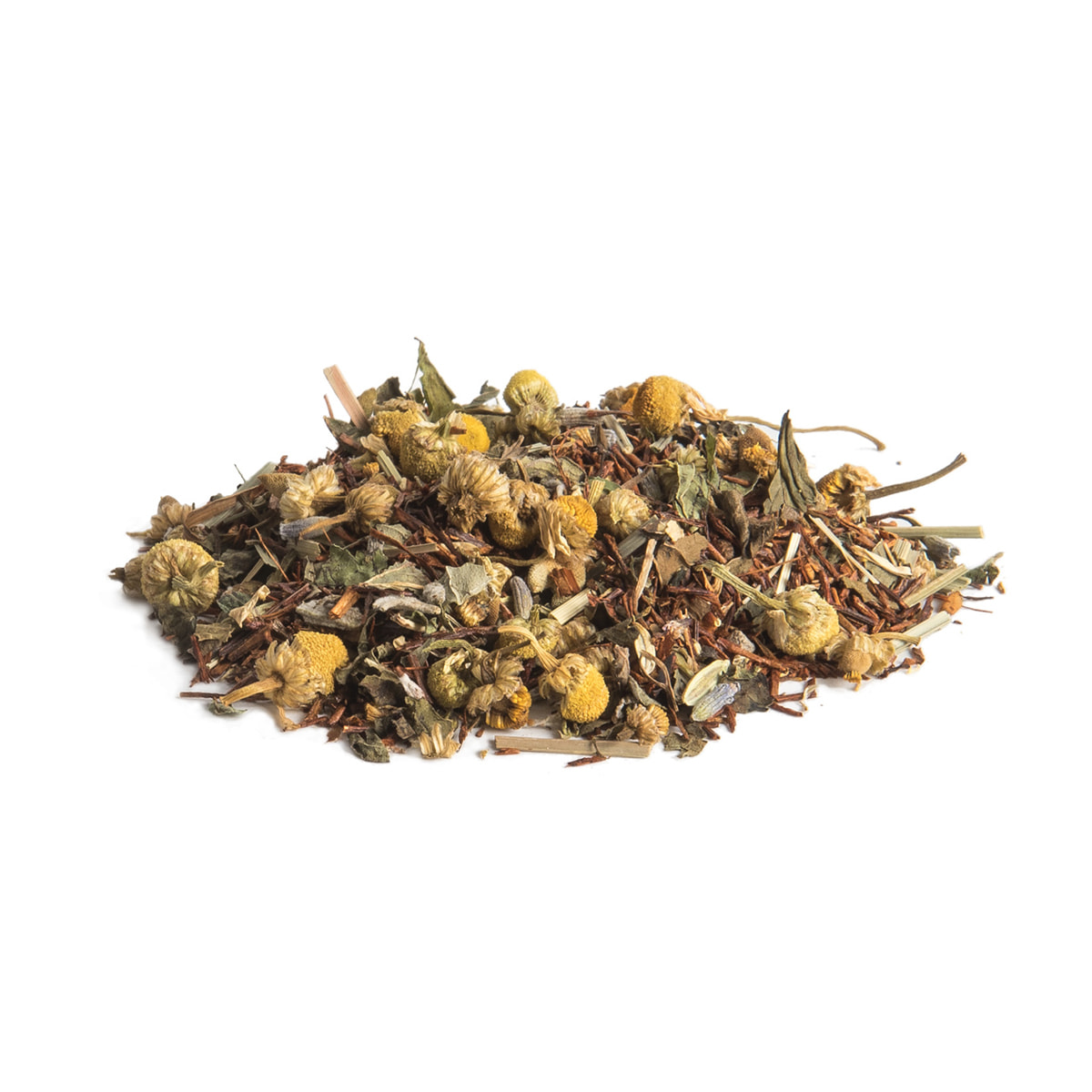 落ち着きをサポートすることで有名なカモミールとラベンダー中心に、ペパーミント、セージ、豊富な栄養素で体を温めるルイボスを厳選し、絶妙な配合比でブレンド。
