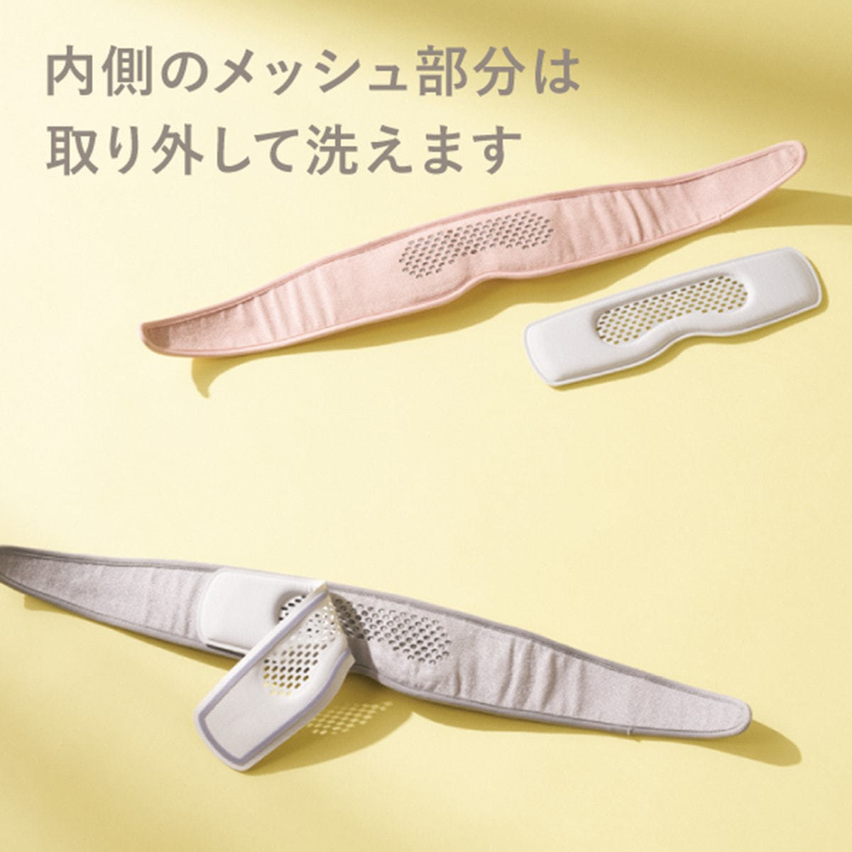 内側のメッシュ部分は取り外して洗える構造で、メイクがついても安心です。