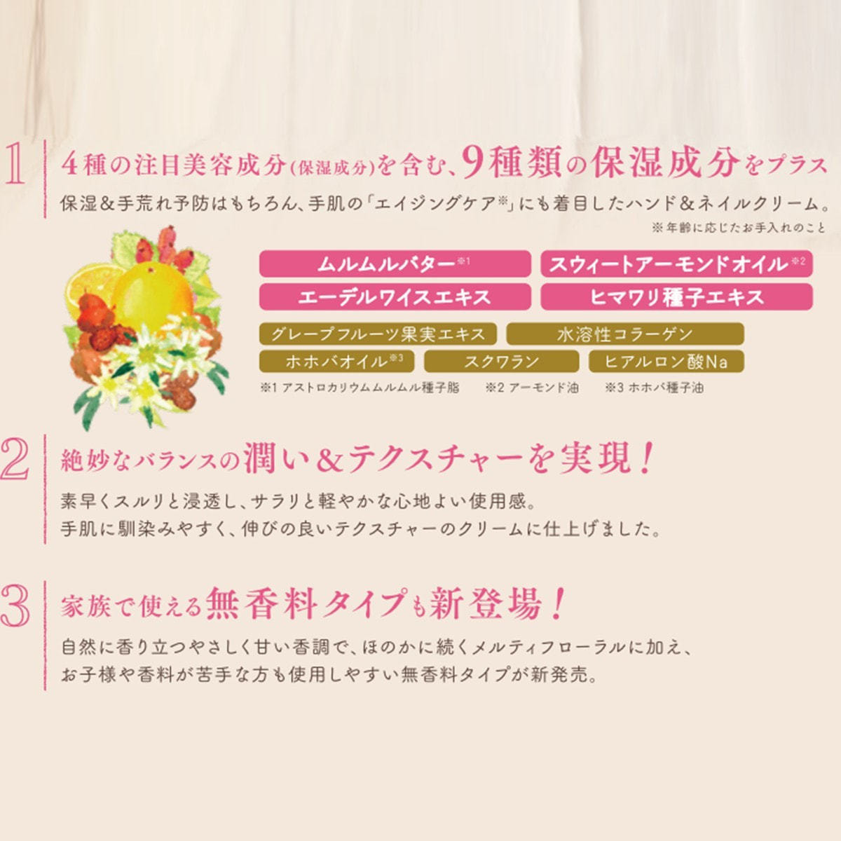 保湿&手荒れ予防はもちろん、手肌の「エイジングケア※」にも着目したハンド&ネイルクリーム